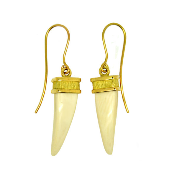 Pendientes de oro y marfil de mamut. 18k. Gold and mammoth ivory earrings.
